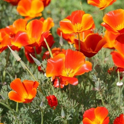 California Poppy Mikado is a beautiful California poppy variety that grows to a height of 6-12 inches and produces large 2-3 inch wide Dark Orange / Red flowers. Ideal for ground cover and rockeries.