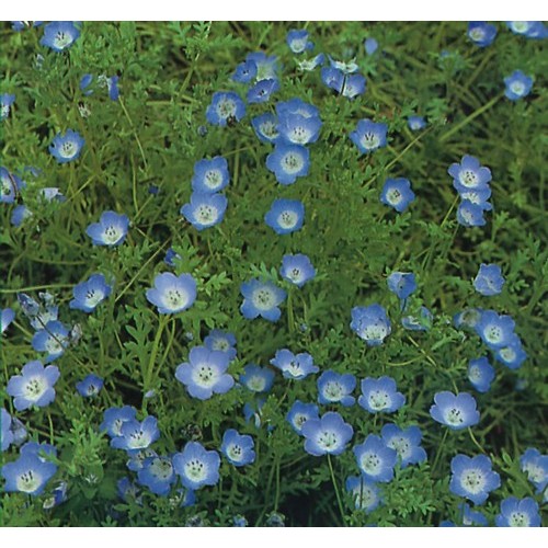 Nemophila Insignis (Baby Blue Eyes) produces beautiful Blue dainty flowers with a White Eye. Spreads well and grows to a compact height of 15cm.